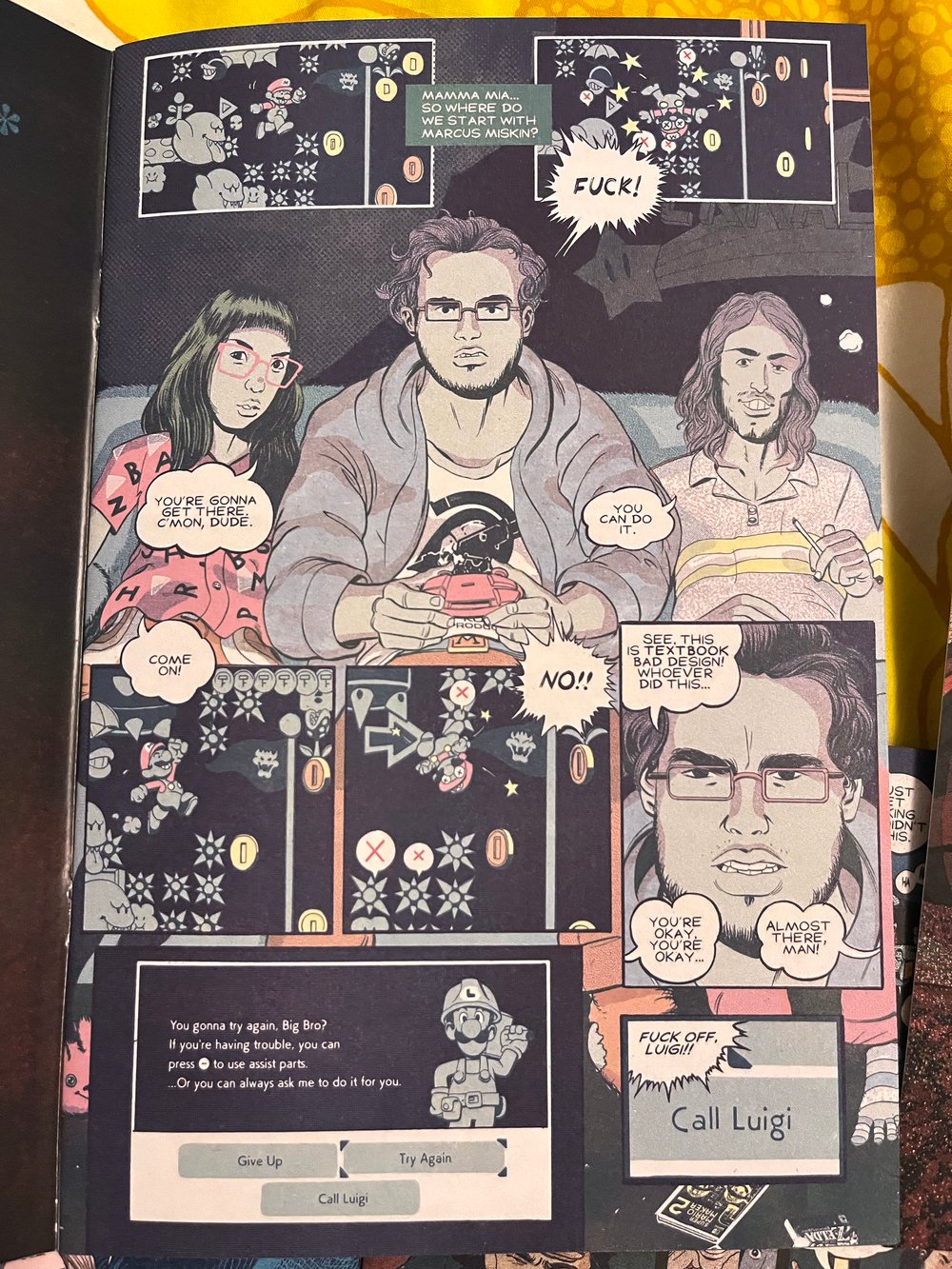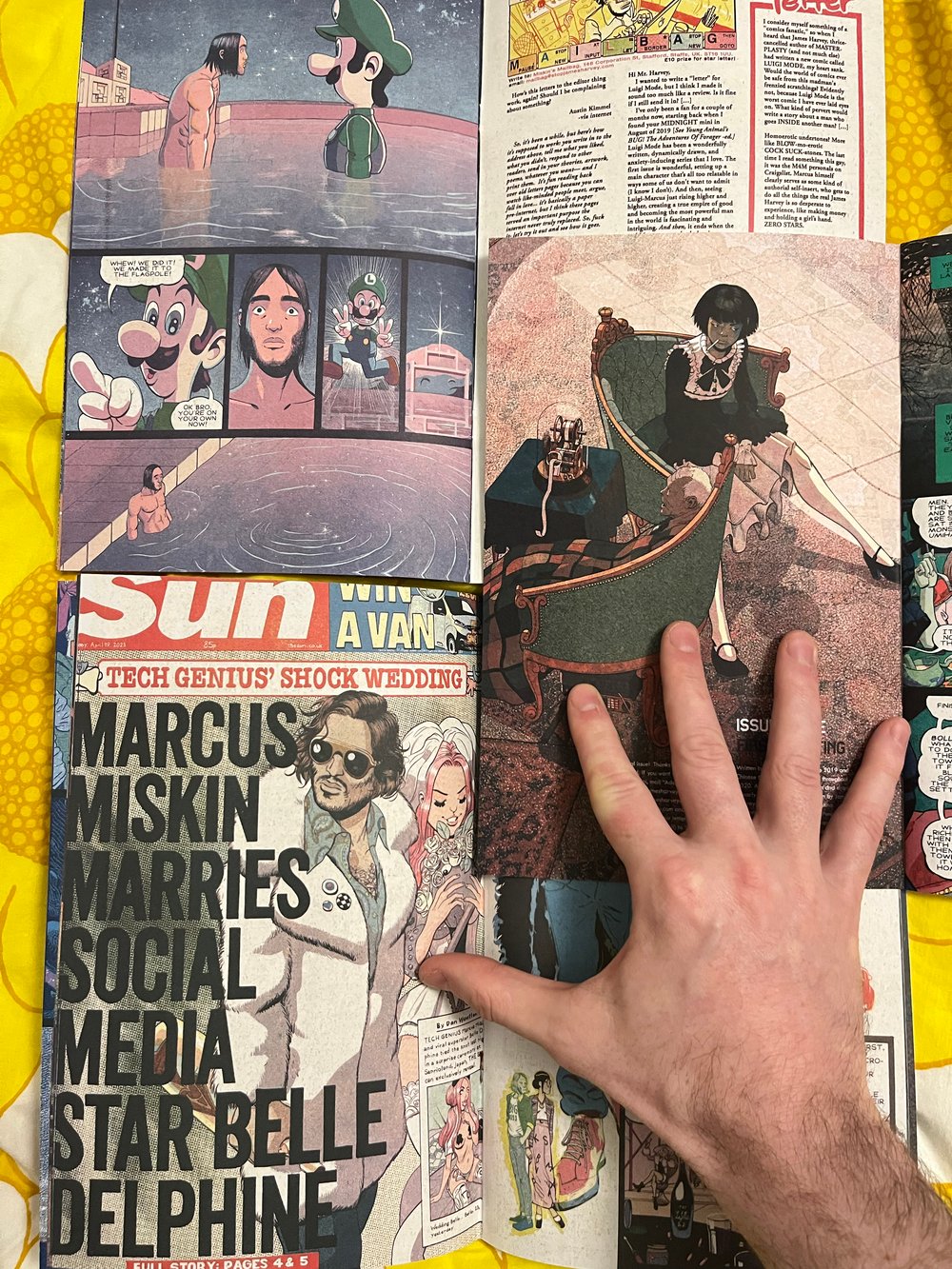 Marcus is a videogame design student whose life is falling apart. On New Year's Eve 2020, help arrives from an unexpected, familiar quarter (please don't sue me, Nintendo). Pull quote declares it "the best comic of 2020", which is clearly a printing error, since the best comic of 2020 was Simon Hanselmann's Crisis Zone, but it's nice someone said that. Luigi Mode shoots past COVID in less than a panel and gets on with the important business of worrying about the third world war, so it's oddly more relevant to today than it was to the moment I wrote it in. This story has ended up being weirdly prescient in a lot of ways.